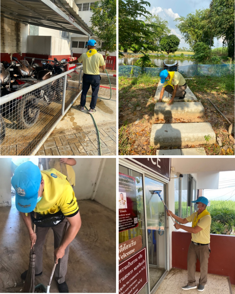 เจ้าหน้าที่ตำรวจชุดจิตอาสา จัดกิจกรรมจิตอาสาพัฒนาทำความสะอาดของ สภ.วังน้ำคู้ ต.วังน้ำคู้ อ.เมือง จ.พิษณุโลก โดยร่วมทำความสะอาดบริเวณต่างๆ เช่น กวาดใบไม้ ทำความสะอาดโรงรถ เป็นต้น