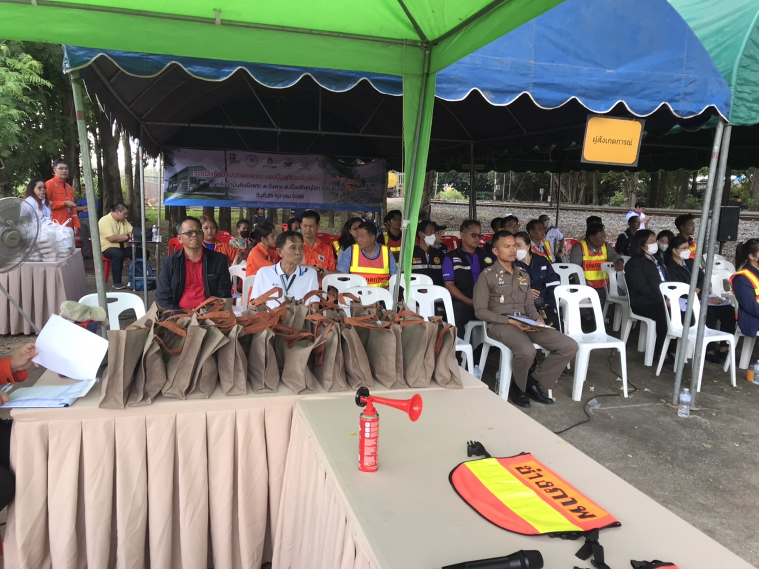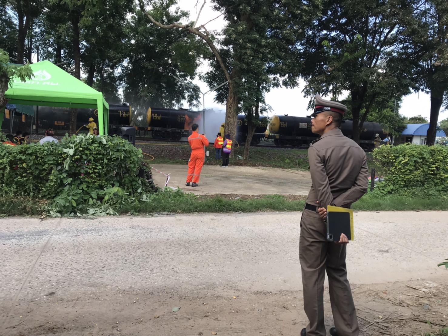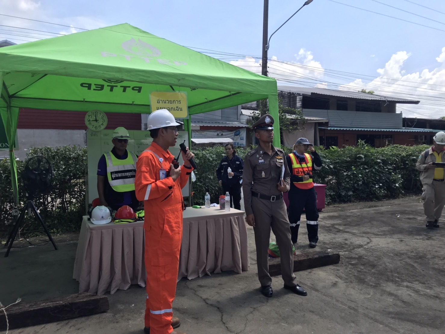 ซ้อมแผนฉุกเฉิน 25 ตุลาคม 2023 โดย admin / ข่าวภารกิจผู้บังคับบัญชา ซ้อมแผนฉุกเฉิน วันที่ ๒๕ ต.ค. ๖๖ เวลา ๐๙.๐๐-๑๒.๐๐ น. ภายใต้อำนวยการของ พ.ต.ท.วรุต คณานนท์ สวญ.สภ.วังน้ำคู้ พ.ต.ท.เสวก ขำขาว สวป.สภ.วังน้ำคู้ โดย ร.ต.ต.ชนะชล ขำพันธ์ รองสว.(ป.)สภ.วังน้ำคู้ (ร้อยเวร ๒-๐) ประจำวันนี้ และสายตรวจวัดหล่ม สายตรวจบึงพระ ร่วม การซ้อมแผนฉุกเฉิน Emergency exercise การซ้อมแผนฉุกเฉิน น้ำมันดิบยังรั่วไหลและลุกติดไฟ OSC ประเมินสถานการณ์แล้ว มีความจำเป็นที่จะก่อคันดินป้องกันการแพร่กระจายของน้ำมันและเปลวเพลิง.ณ ปตท.สผ.ตำบลบึงพระ อ.เมือง จ.พิษณุโลก