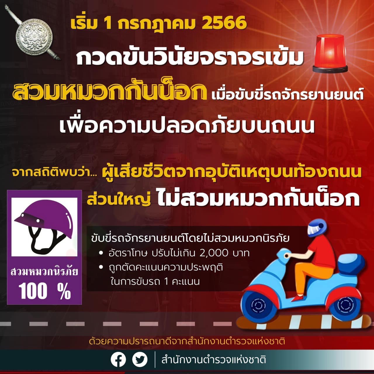 กวดขันวินัยจราจรเข้ม .. สวมหมวกกันน็อกทุกครั้งเมื่อขับขี่ หรือ นั่งซ้อนรถจักรยานยนต์ เพื่อความปลอดภั