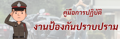 คู่มือปฏิบัติงานสำหรับเจ้าหน้าที่ข้อมูลเกี่ยวกับคู่มือหรือมาตรฐานการปฏิบัติงาน ตามภารกิจของแต่ละงาน (งานอำนวยการงานป้องกันปราบปราม งานจราจร งานสอบสวน และมาตรฐานการปฏิบัติงาน Standard Operation Procedure : SOP) พร้อมรายละเอียด (คลิกที่ภาพ)