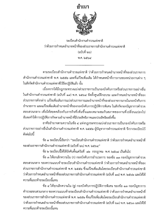 ระเบียบสำนักงานตำรวจแห่งชาติ ว่าด้วยการกำหนดอำนาจหน้าที่ของส่วนราชการสำนักงานตำรวจแห่งชาติ (ฉบับที่26)